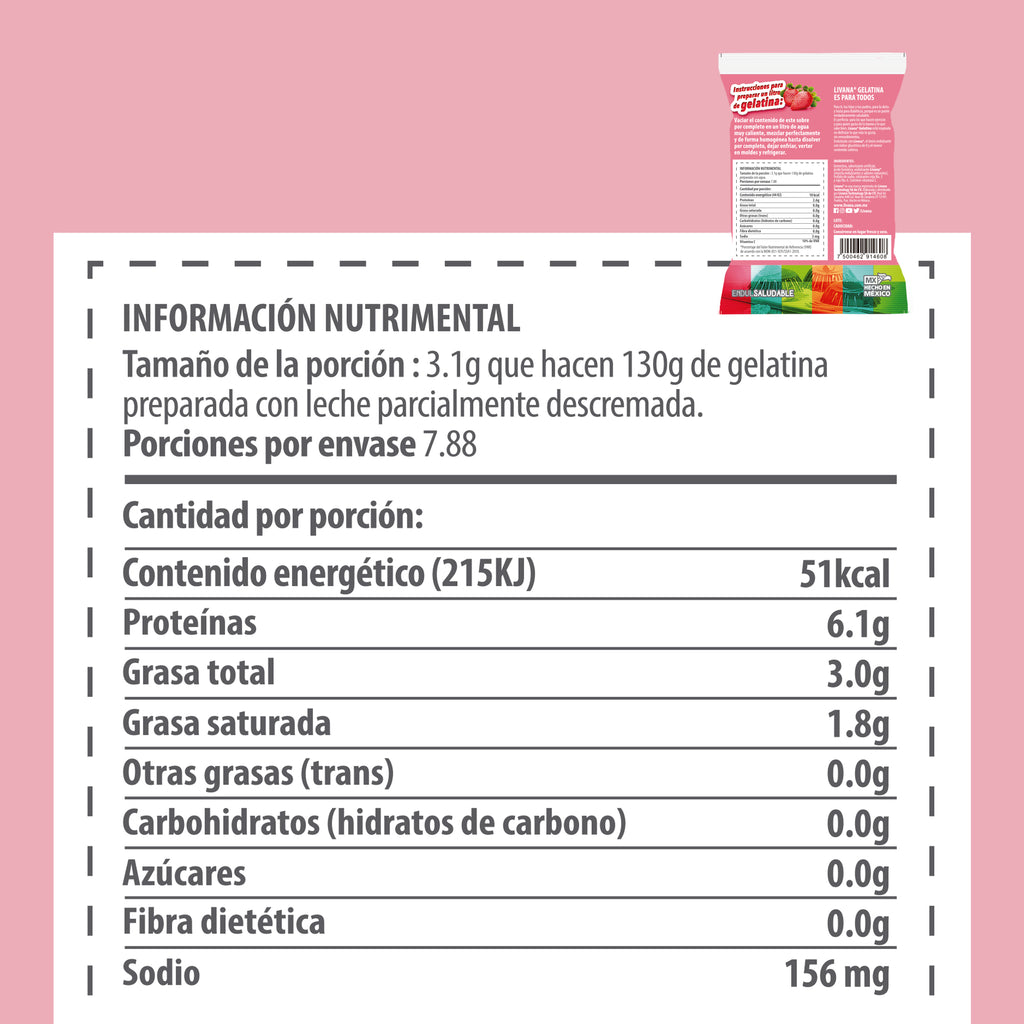 ¡Una gelatina realmente sin azúcar! Endulzada con Livana® para que disfrutes lo que más te gusta, sin remordimientos.