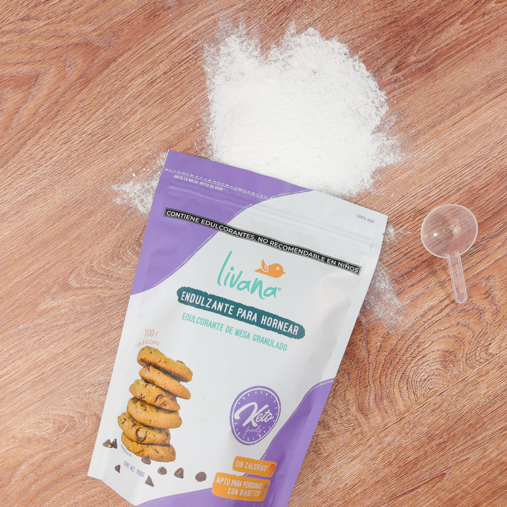 Livana para Hornear es un sustituto de azúcar elaborado con Eritritol e Isomalt, ideal para endulzar tus postres favoritos. Delicioso, sin calorías y con bajo índice glucémico, tu mejor aliado para consentir y cuidar la salud de toda tu familia, incluso a los integrantes que padezcan de diabetes.